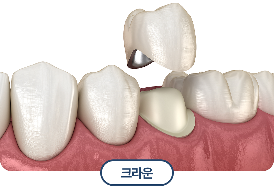 신경치료 후 크라운(말기, 치아 전체 씌우기) 등으로 나뉘며, 재료(레진, 금, 세라믹 등)